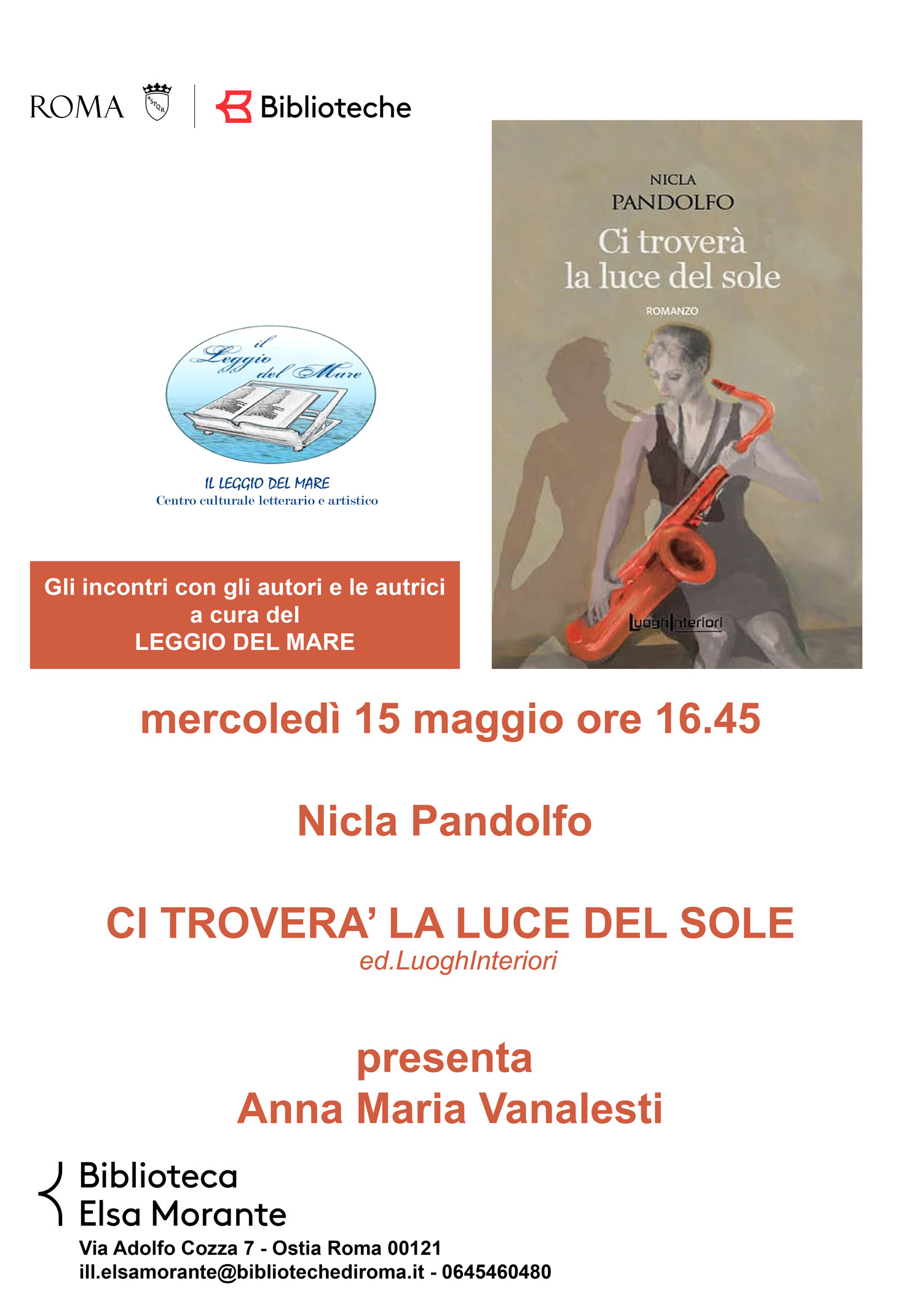 Il Leggio del mare incontra l'autrice del libro edito da LuoghInteriori. Presenta Anna Maria Vanalesti