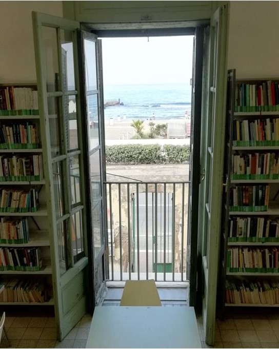 La biblioteca Elsa Morante si trova all’interno del fabbricato della ex Colonia Marina Vittorio Emanuele III. E’ un luogo affascinante ed è l’unica biblioteca di Roma con vista “delfini”.