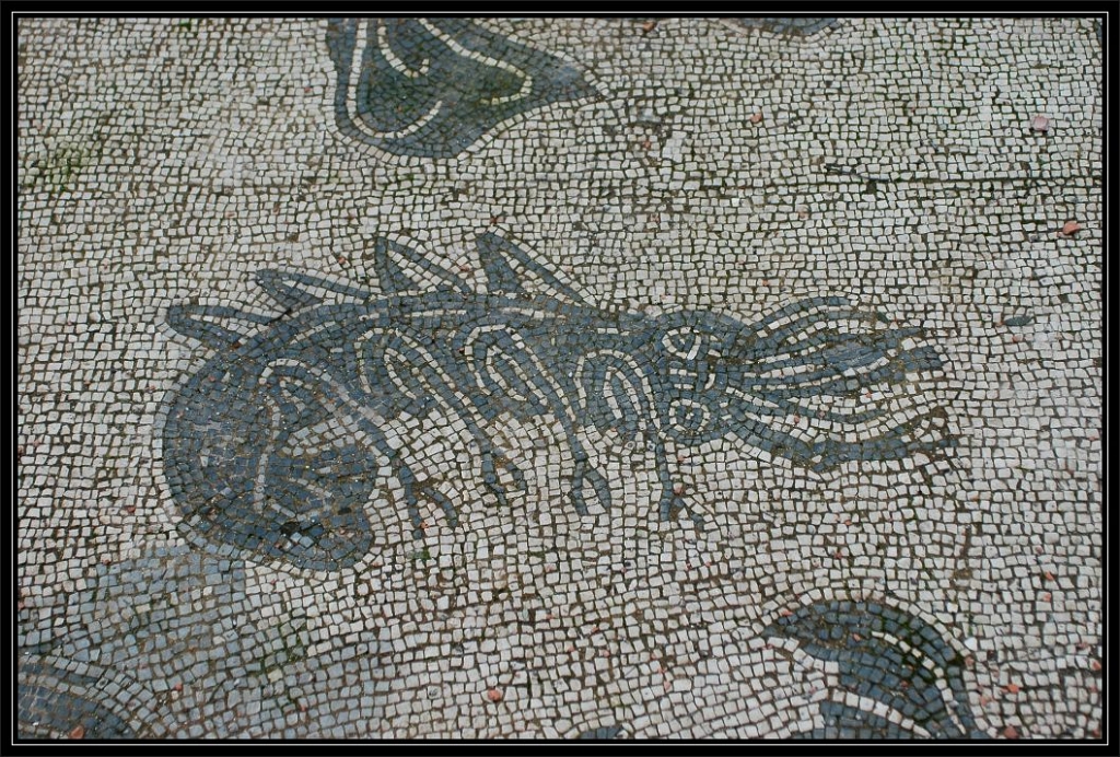 Un quartiere residenziale è posto ad est su un’ampia piattaforma elevata di circa due metri rispetto al peristilio, si riconoscono resti di muri in opera reticolata e frammenti di pavimenti musivi in bianco e nero. A sud–ovest, ad una quota più alta del quadriportico, si estende un impianto termale, dove l’acqua veniva attinta dal sottosuolo per mezzo di una ruota idraulica. L’impianto è dotato di una vasca circolare per bagno caldo, ma l’ambiente più notevole presenta una pavimentazione a mosaico in bianco e nero del 139 d.C. con la raffigurazione di Nettuno col tridente su un carro trainato da due ippocampi, tra pesci, crostacei e cavalli marini.