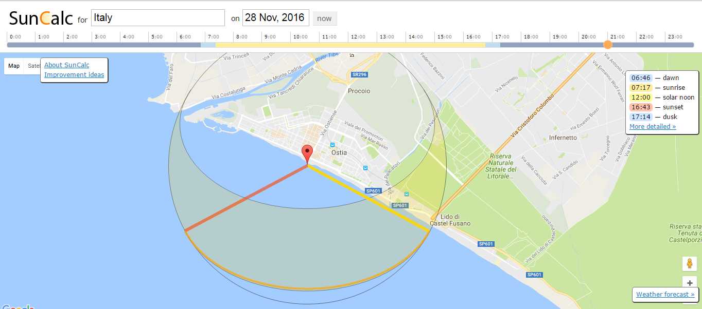 Inoltre giova ricordare che in estate, ad Ostia, né le albe, né i tramonti sono sul mare mentre è solo negli equinozi di primavera (21 marzo) e di autunno (23 settembre) che il sole nasce ad est e tramonta ad ovest.