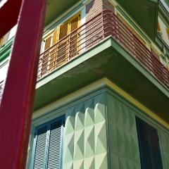 Effettivamente si tratta di un edificio stravagante dai colori che sembrano quelli del piumaggio di un pappagallo disegnato da Fortunato Depero.